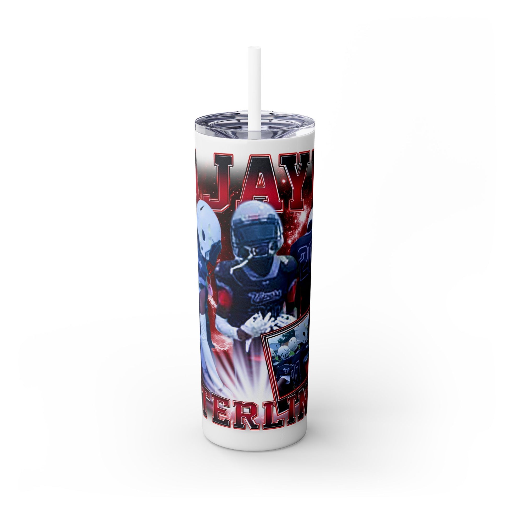 The Maars personalized skinny tumblers keep your drinks hot for 12h and cold for 24h, making them the perfect sipping companion all year round. With 20oz capacity, these tumblers come in a matte or glossy finish, and feature a tapered shape with a slim design for effortless carriage. The plastic press-on lid with color-matching straw makes for great practicality on the go, while all components are BPA-free and non-toxic; aka perfect for the whole family. Each tumbler has a matte UV-print finish.