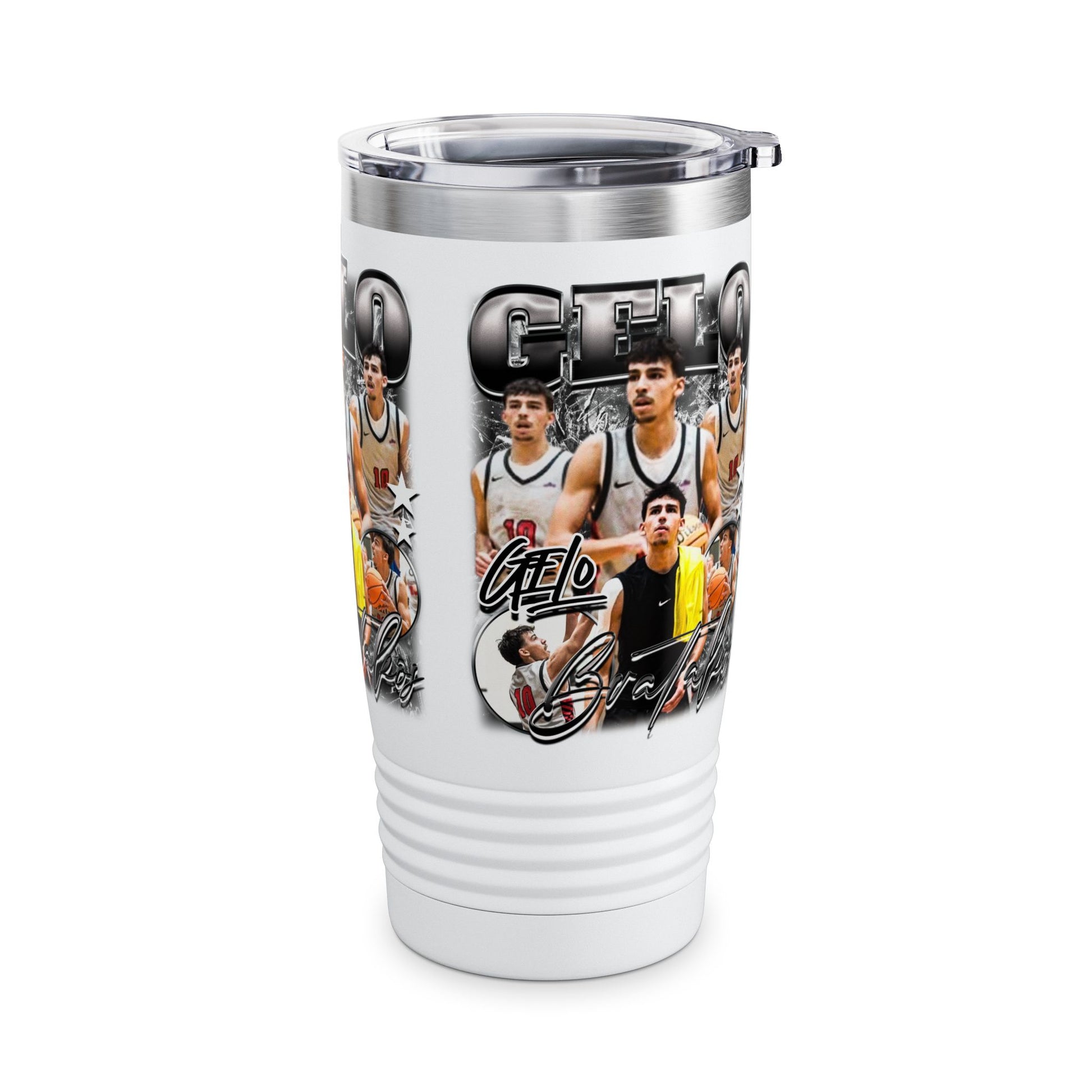These custom 20oz tumblers feature a double-wall, stainless steel construction for high-end insulation and durability. The clear, push-on plastic lid makes sipping a breeze on the go while the ribbed bottom provides an optimized, steady grip. Choose between 3 gorgeous colors to best compliment your design. All tumblers come with a glossy varnished print.