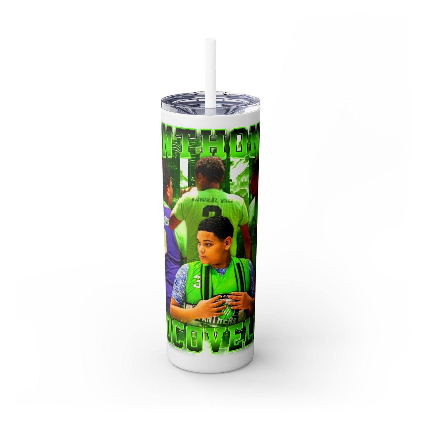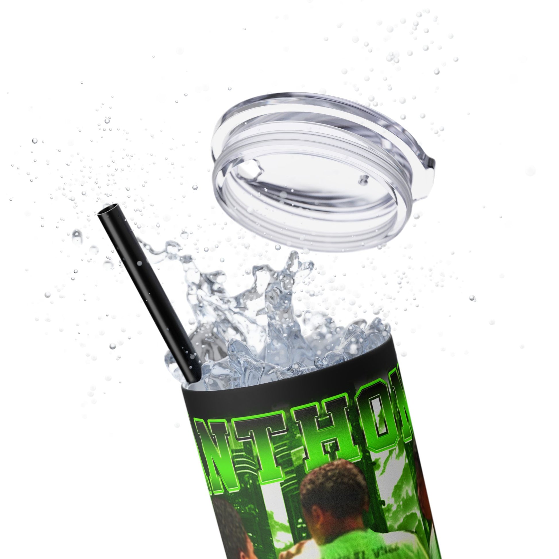 The Maars personalized skinny tumblers keep your drinks hot for 12h and cold for 24h, making them the perfect sipping companion all year round. With 20oz capacity, these tumblers come in a matte or glossy finish, and feature a tapered shape with a slim design for effortless carriage. The plastic press-on lid with color-matching straw makes for great practicality on the go, while all components are BPA-free and non-toxic; aka perfect for the whole family. Each tumbler has a matte UV-print finish.